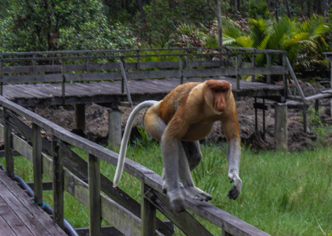 It turns out that orangutans weren’t the only monkeys in Malaysian Borneo. The title of “biggest nose in Borneo” goes to the proboscis monkey. They are, hands down, the weirdest looking animals I have ever seen. Long nose, beady eyes, orange-reddish fur on the top half, grey fur on the bottom, and a large belly made for a strange combination. Another endangered species, proboscis monkeys are endemic to the island of Borneo.